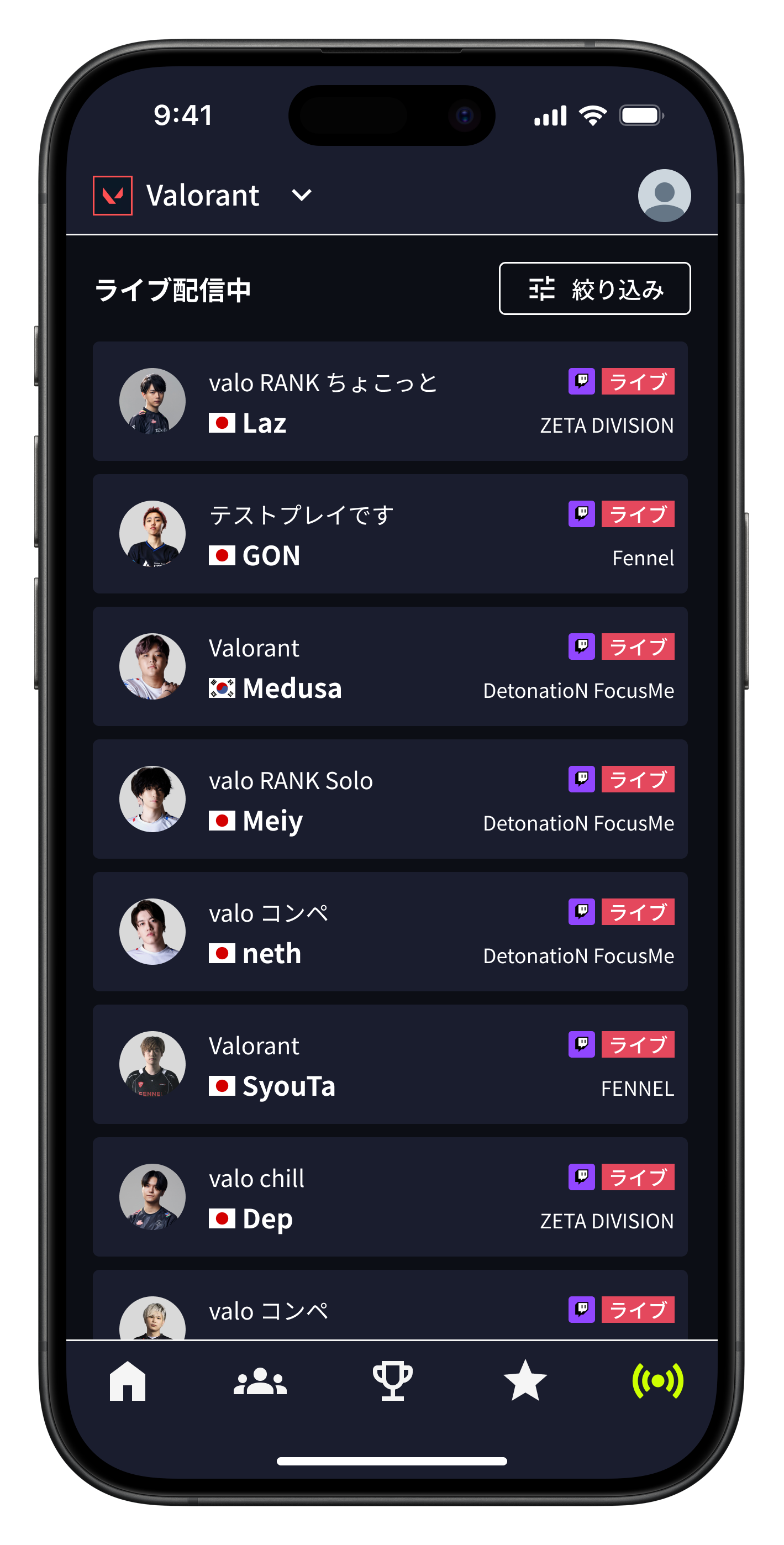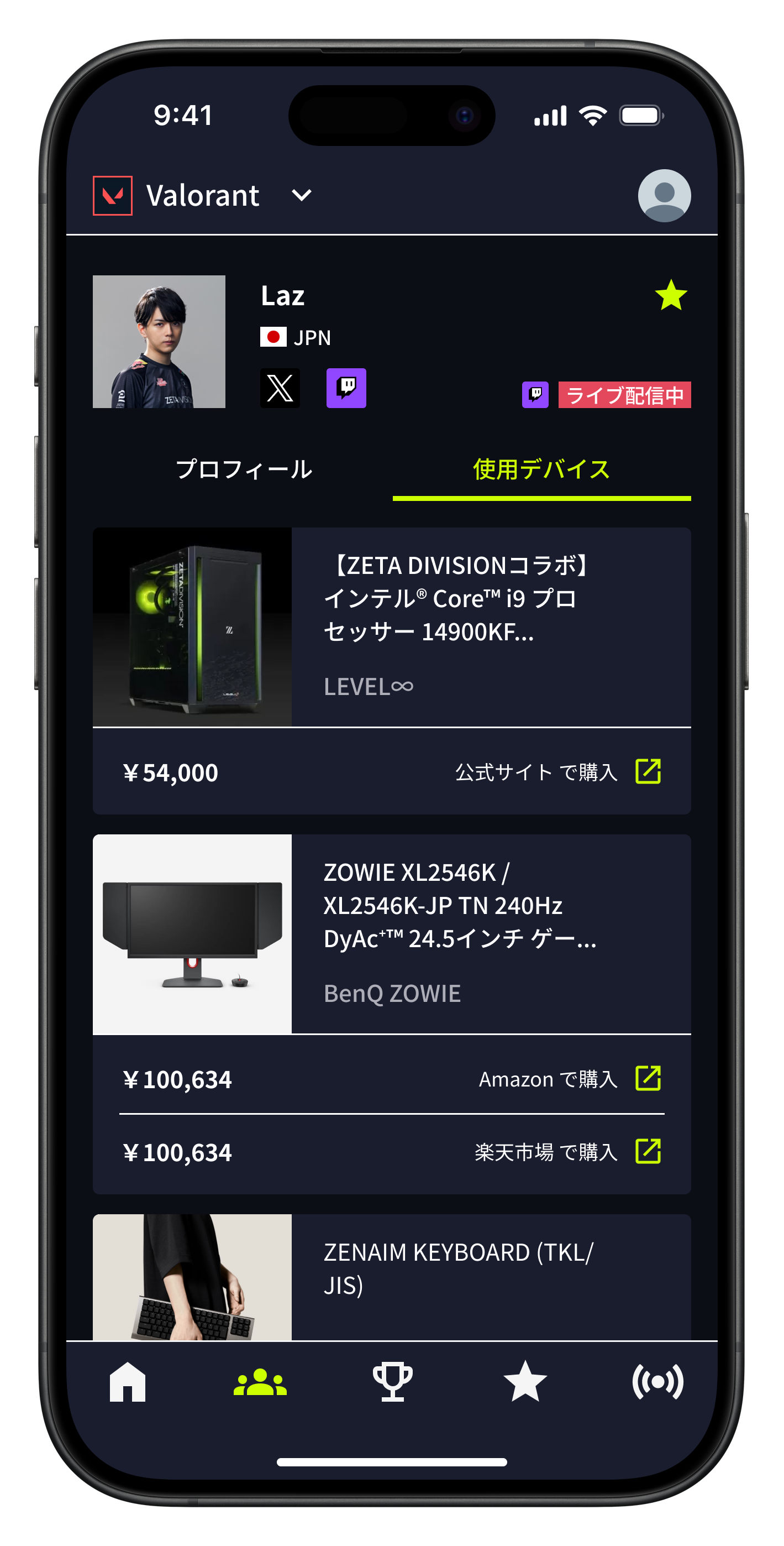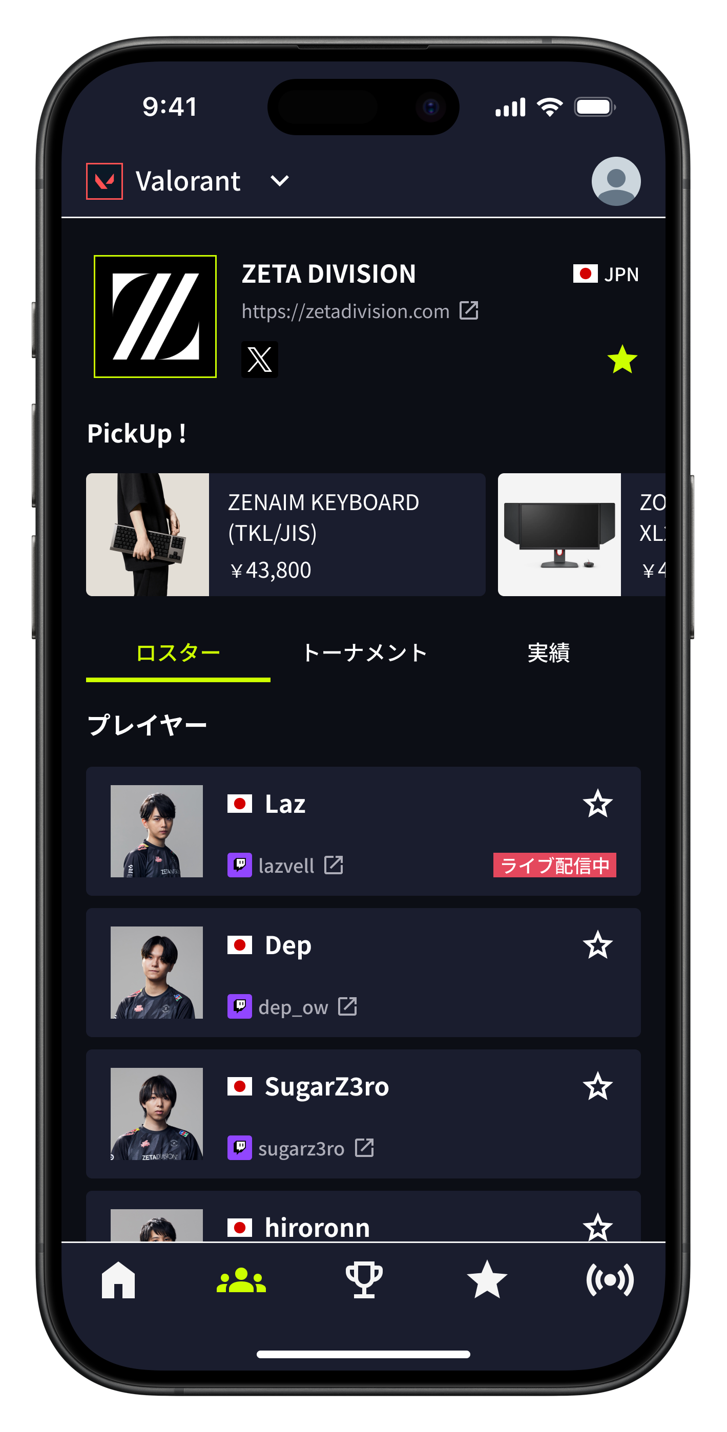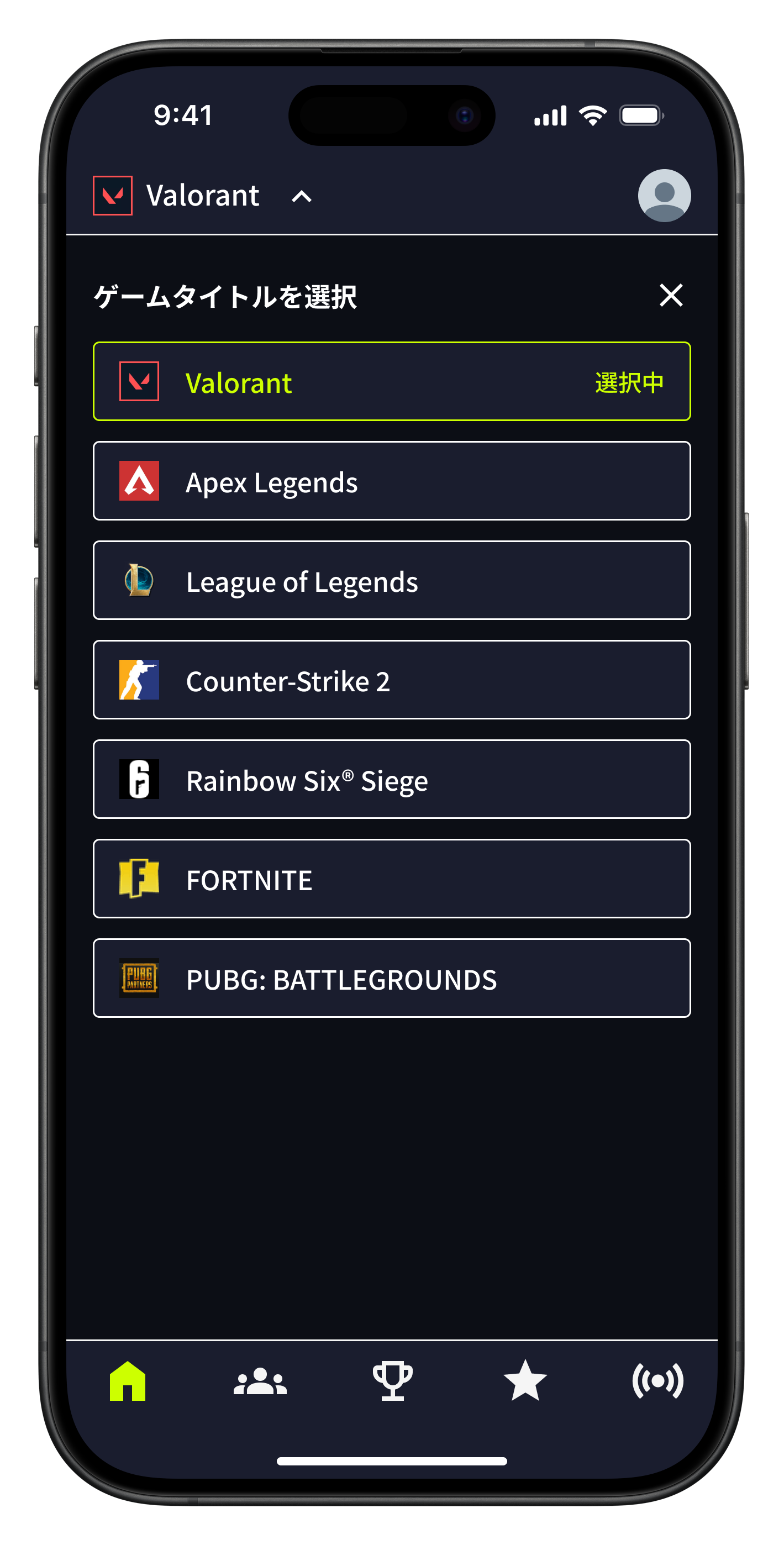 プレイヤーの配信情報も提供することで、プロプレイヤーの知名度も高め、より一層e-sportsを盛り上げる。