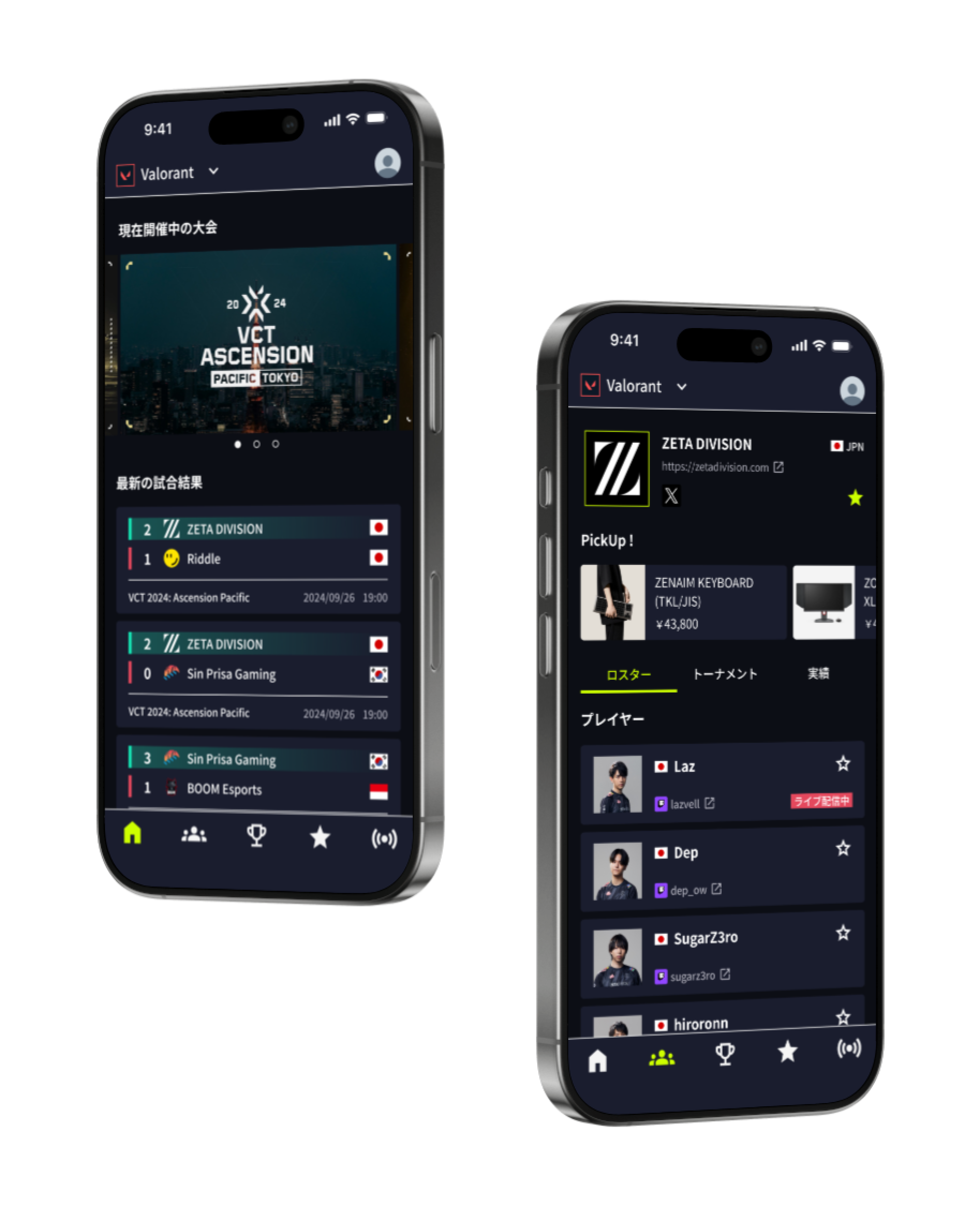 また、チーム・選手の情報では使用デバイスなどのプロモーションも行うことで、チーム・選手を支援します。